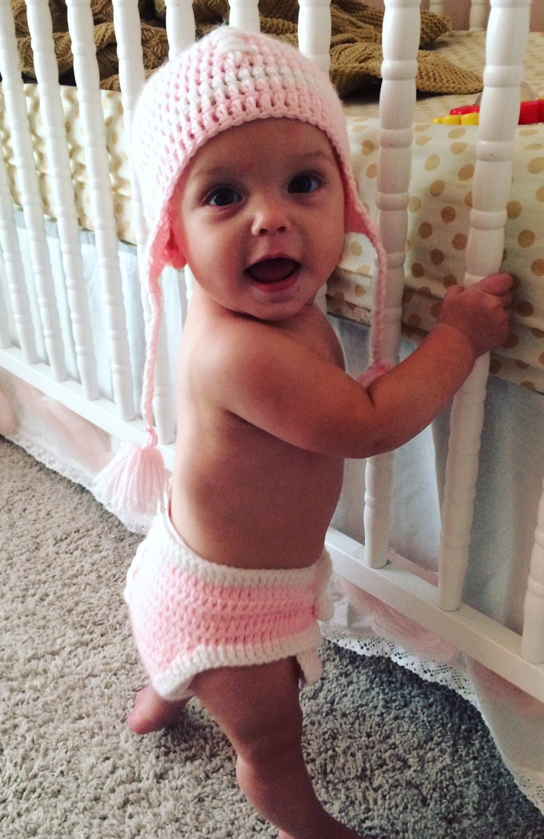 Crochet Baby Girl Newborn Pink White Football Diaper Cover Hat Beanie Baby Soft Yarn Photo Prop Baby Shower Gift Newborn Photo Shoot