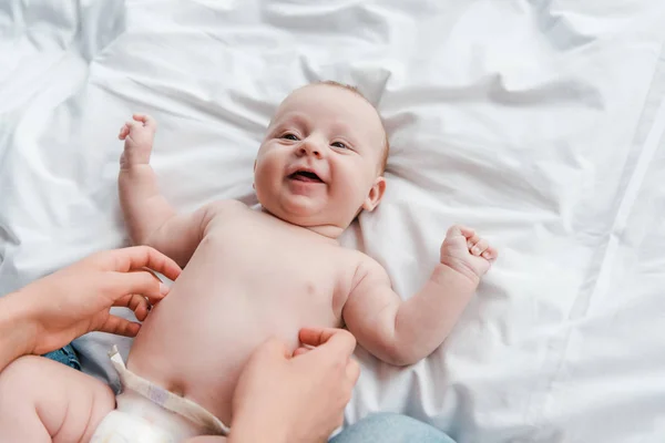 Young Mother Changing Diaper Baby Boy Stock Image Image