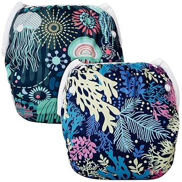 2 Pack Reusable Swim Diaper Stylish Adjustable Baby Swim Diapers