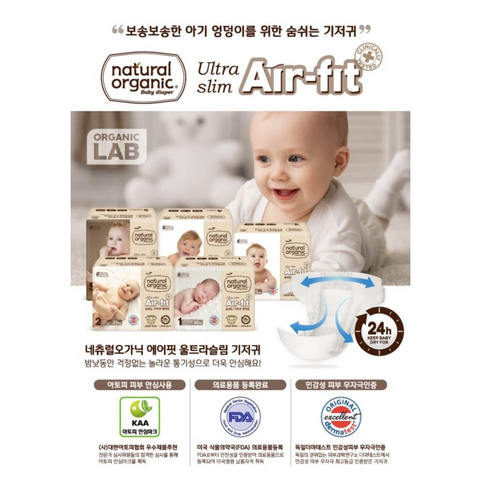 Natural Organic Air Fit Ultra Slim Taped Diapers Newborn Up To 3kg