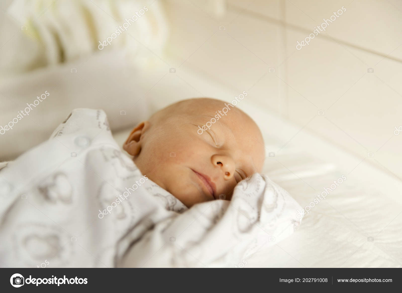 Cute Newborn Baby Boy Sleeps In A Nursery While Changing