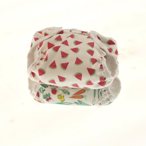 Set Of 2 Watermelon And Veggie Newborn Cloth Diapers With Umbilical Cord Snaps