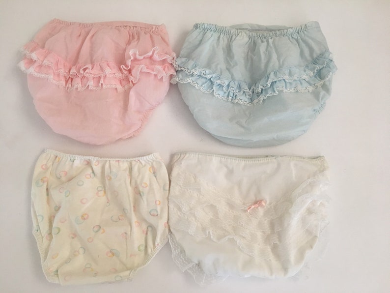 Vintage 50s Diaper Covers Pink Blue White Bubble Print Lace Ruffled Newborn Bloomers 0 3 Months