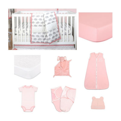 Cheatwood Elephant Baby Girl Nursery 6 Piece Crib Bedding Set