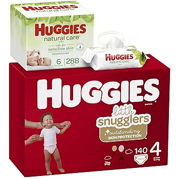 Huggies Brand Bundle Huggies Little Snugglers Baby Diapers Size 4 140 Ct Huggies Natural Care Unscented Baby Wipes Sensitive 6 Disposable