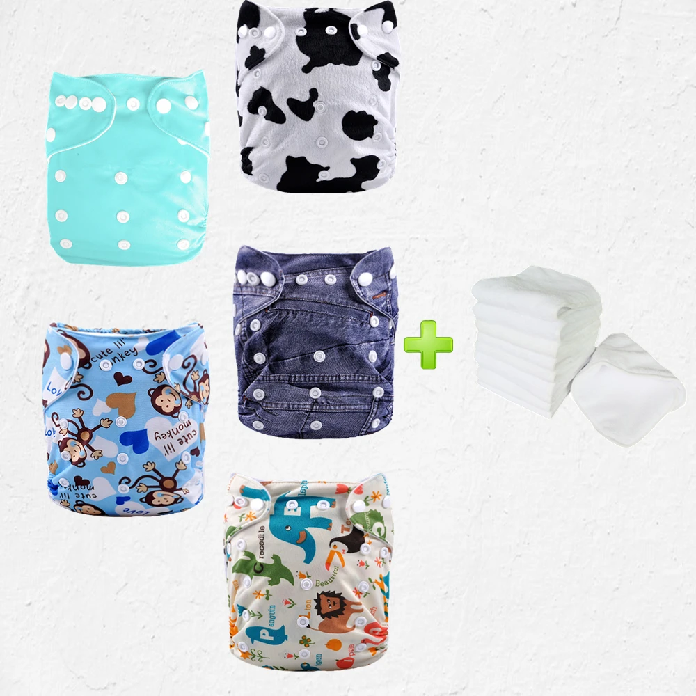 Us 39 23 32 Off 5 Sets Tpu Waterproof Double Gussets Minky Pocket Diaper Baby Washable Reusable Cloth Nappies With Inserts Suit 0 To 2 Years In Baby