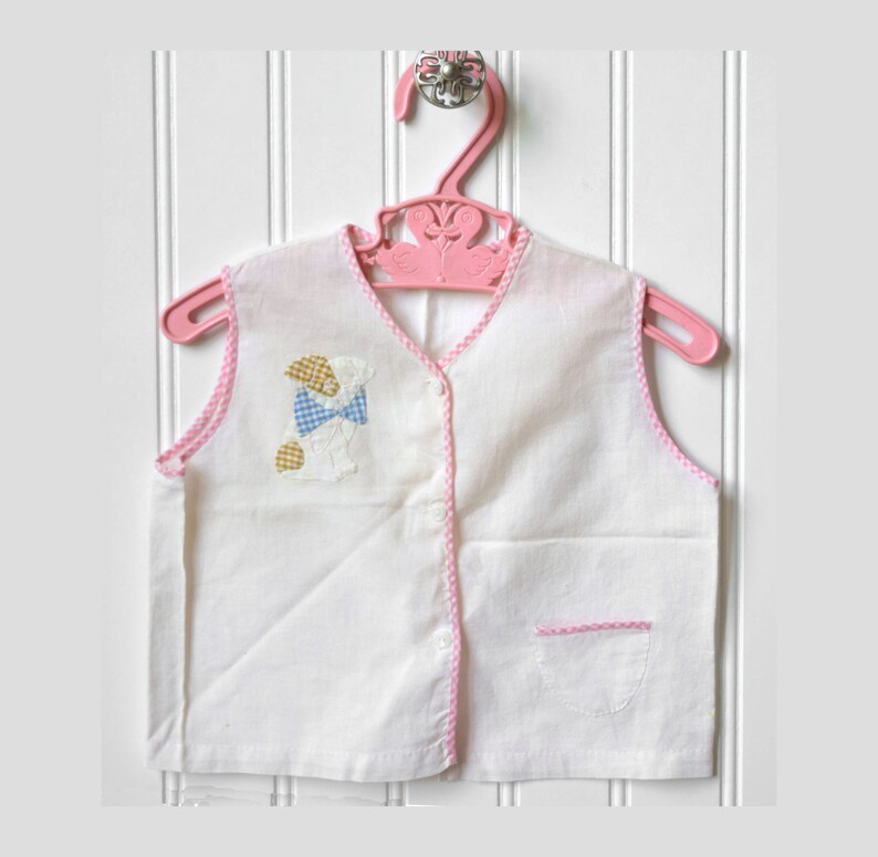 Vintage 30 S Baby Girls Diaper Shirt Top Size Newborn W Puppy Dog Applique White Cotton W Pink Blue Check Philippines Doll Clothes