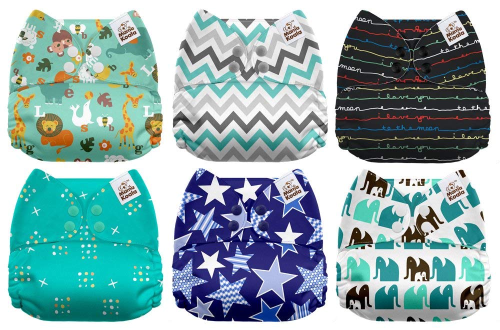 Mama Koala One Size Baby Washable Reusable Pocket Cloth Diapers 6 Pack With 6 One Size Microfiber Inserts Jagger