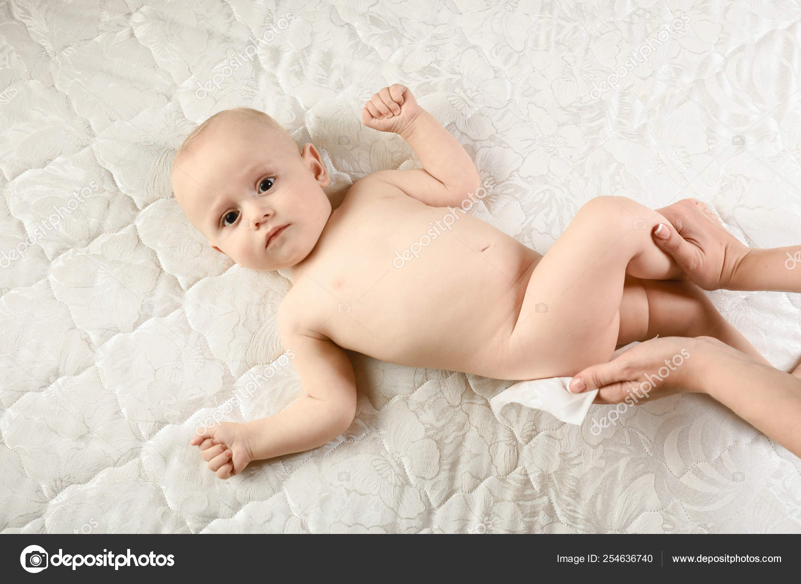 A Newborn Baby Gets A Diaper Change The Mother Wipes The