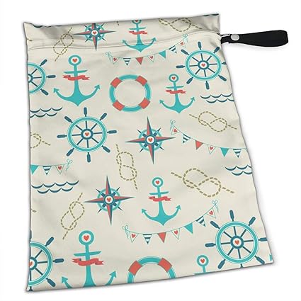 Nautical Reusable Unisex Newborn Baby Cloth Pocket Diapers 7 Pack With 7 Bamboo Inserts And 1 Wet Diaper Bag One Size Adjustable Washable Organic