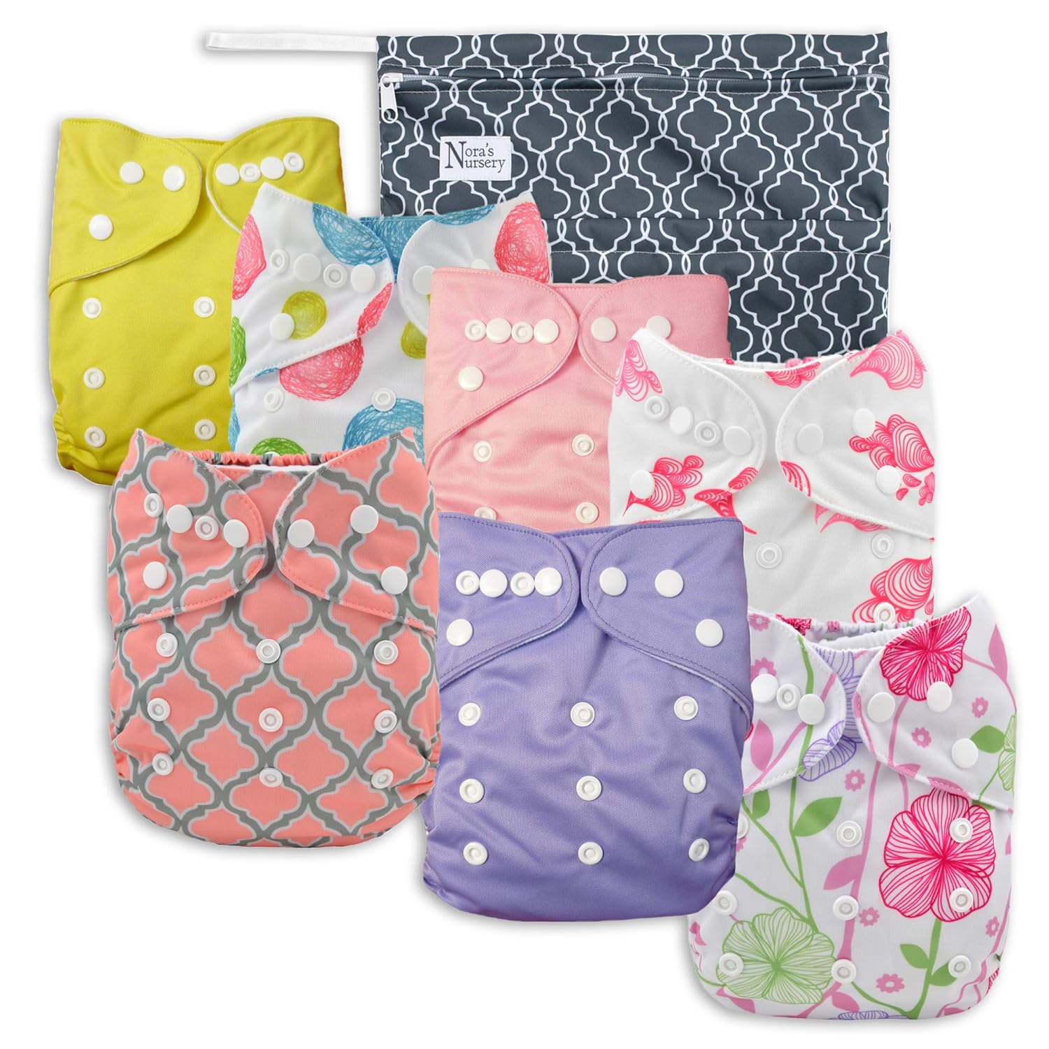 Pink Blossom Baby Cloth Pocket Diapers 7 Pack 7 Bamboo Inserts 1 Wet Bag By Nora S Nursery