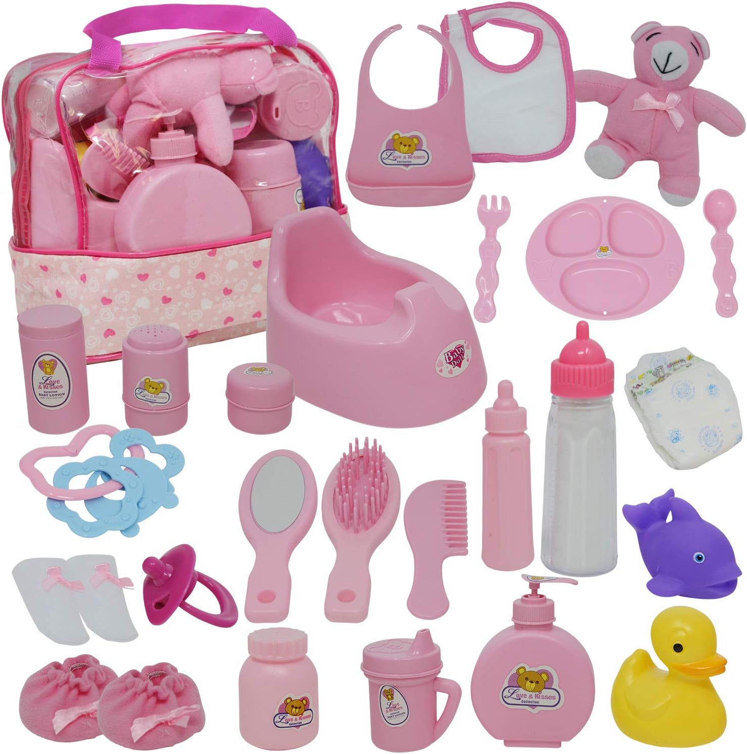 Baby Doll Diaper Bag Set Doll Feeding Set With Baby Doll Accessories Includes Doll Bottles