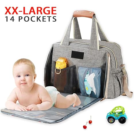 Baby Diaper Bag Large Stylish Tote Convertible Travel Baby Bag For Boys Girls With Changing Pad Insulated Pockets Grey